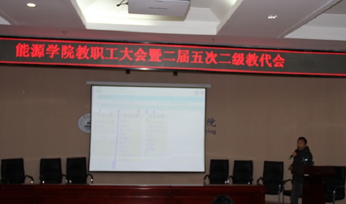 2015年1月30日上午,yl23411永利集团在动力楼402会议室召开能源学院教职工大会暨二届五次二级教代会。能源学院院长黄树红教授、党总支书记陈刚教授、煤燃烧国家重点实验室主任姚洪教授、党总支副书记冯晓东出席会议,能源学院全体教职工参加会议。教代会由能源学院工会主席张立麒主持。