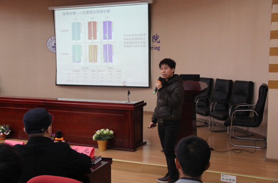 经过简短的休息,学术年会分成两个会场继续进行。于敦喜老师,杨晴老师,张捷老师,李学敏老师,罗聪博士,申利梅博士为大会作了精彩的研究报告。在研究生报告期间,黄仕鑫,杨明,王智等同学都就自己的研究课题进行了详细的介绍,在指导老师的指导下,一次次的实验,修改,经过多次的改动后才有了如今精彩的论文展示。讨论环节,评委,台下研究生同学也就自己感兴趣的点进行了提问。