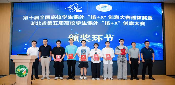 本次赛事在学会和承办方的精心组织下,自4月份发出通知以来,得到了各高校师生的积极响应,400多名师生参与了作品创意活动。共征集到97份作品,经过两轮严格筛选,最终从72个优秀作品中遴选出31个进入决赛环节,现场展示20个作品,充分展现了湖北高校青年学子的创新热情和科研实力。本届比赛在作品质量和主题广度方面都达到了新高。作品不仅数量创纪录,更在内容的深度、创新性和科普性方面表现优异。特别是在结合热点、解决实际问题方面,青年学子展现出极强的创造力和社会责任感。他们用生动的语言和丰富的创意,将核科技的奥秘逐步解码,让公众更好理解核技术的价值与安全。比赛现场,作品展播与答辩环节紧密结合,参赛者们用生动的演讲和精彩的演示,阐释了他们的创意设计。经过三个多小时的激烈比拼,评委们对作品的科学性、创新性和社会价值给予高度评价。评选出一等奖6名、二等奖10名、三等奖15名,并授予5个单位优秀组织奖。获得一、二等奖的作品将推荐参加国赛。我校能源学院、法学院、电气学院、材料学院等学院组建了十支队伍参加了此次省级“核+X”创意大赛,获一等奖1名、二等奖3名、三等奖1名、优秀奖5名、优秀组织奖一项。