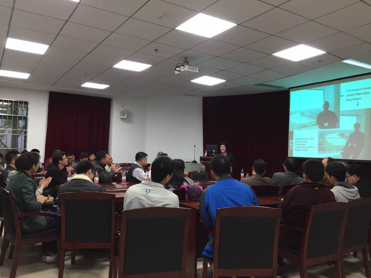 报告开始前,弘光教授平易近人地向大家进行了自我介绍。弘光教授1973年进入华中工学院造船系学习,毕业后留校任教,并于1982年在校获得工学硕士学位。1985年赴英国剑桥大学获得博士学位,是英国剑桥大学机械专业第一位华人女博士,并在著名的卢瑟福实验室从事博士后研究工作。1990年至今在澳大利亚悉尼科技大学机械系任教,主要从事双燃料强化发动机,小型发动机优化减排,柴油发动机碳烟消除,流体边界层等方面研究。在内燃机方面,尤其在混合燃料领域有较大成就。弘光教授的最新成果之一是对澳大利亚著名的VICTA公司传统割草机的革新,大幅提高了排放性、经济性和动力性;另一项成功的研究是减少飞机在飞行中的迎面阻力,提高了飞行速度同时降低了燃油消耗率。