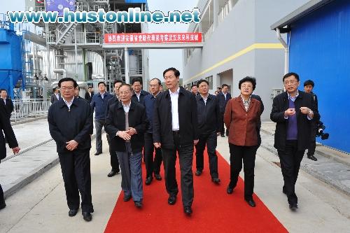 新闻网讯(通讯员 周铭 蔡丽娟)4月13日,由安徽省省委书记、省人大常委会主任张宝顺,安徽省省委副书记、省长李斌率领的安徽省党政代表团来校参观考察3兆瓦碳捕获试验基地。湖北省省长王国生、常务副省长王晓东,武汉市市委书记阮成发、市长唐良智等省市领导陪同考察。
