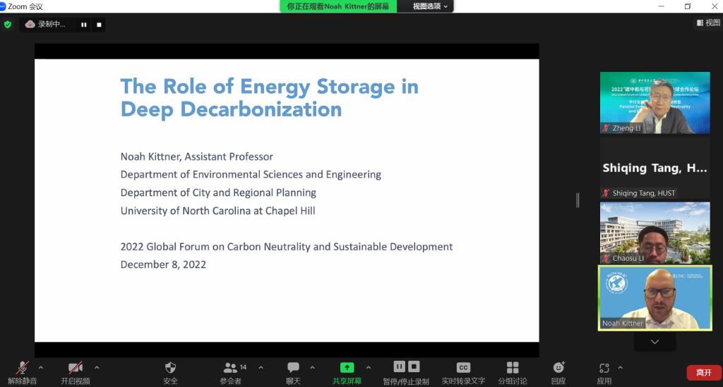 北京时间12月8日,由学校与美国北卡罗莱纳大学教堂山分校主办,我校yl23411永利集团、煤燃烧国家重点实验室、经济学院、北卡罗来纳大学教堂山分校中国城市研究中心承办的2022“碳中和与可持续发展”全球合作论坛正式拉开帷幕。来自中美双边30余位专家学者以线上线下相结合的形式参与研讨,共谋低碳发展之路,共话全球绿色未来。学校副校长陈建国出席开幕式并致辞,国际交流处处长陈洁主持开幕式。能源学院党委书记姚洪、院长罗小兵、副院长方海生、煤燃烧国家重点实验室副主任赵永椿、能源学院教授柳朝晖参加开幕式。开幕式及平行论坛吸引了共计5000余人通过直播平台在线观看。