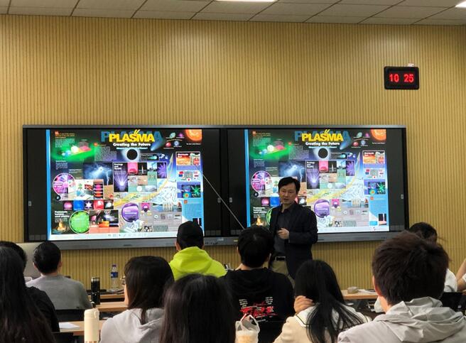 本次科普课屠昕教授主要为大家介绍了等离子体的概念、等离子体产生的原理以及等离子体的前沿研究现状与开发利用前景等内容。并结合自己的研究工作,深入浅出的为大家讲解了生物质等离子体气化技术、等离子体在二氧化碳转化以及生物焦油的重整等方面的研究。屠昕教授同时播放了很多小视频,加深了大家对等离子体的了解。屠昕教授还介绍了低温等离子体技术在能源转化与环境污染控制,纳米科技与材料合成,非热常压等离子体医疗以及等离子体农业和食品等方面的广阔应用前景。屠昕教授指出等离子体的研究和应用是多学科的交叉融合,需要物理、化学、电化学、化工、环境与能源等方面知识,鼓励大家学好每一门课。屠昕教授的课堂极大的开阔了同学们的眼界,引起了同学们广泛兴趣。课后,屠昕教授耐心详细地为本科生们解答了他们的问题。同学们纷纷表示,这次授课内容为创新项目的设计提供了新思路和新的能量来源形式,因此受益匪浅。